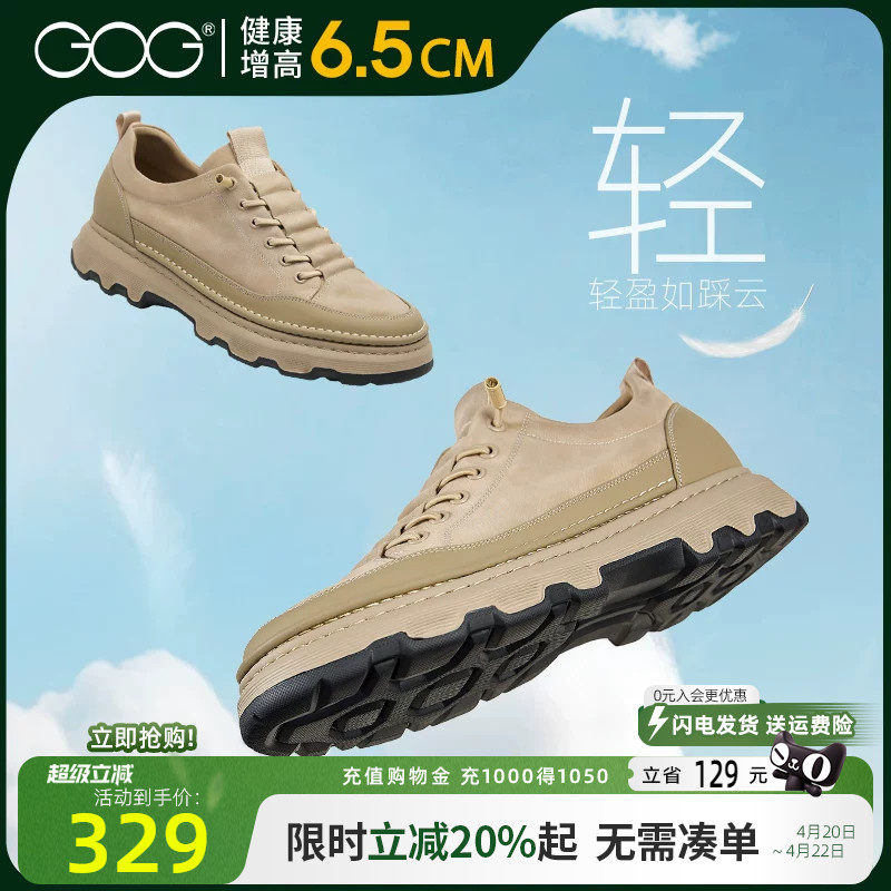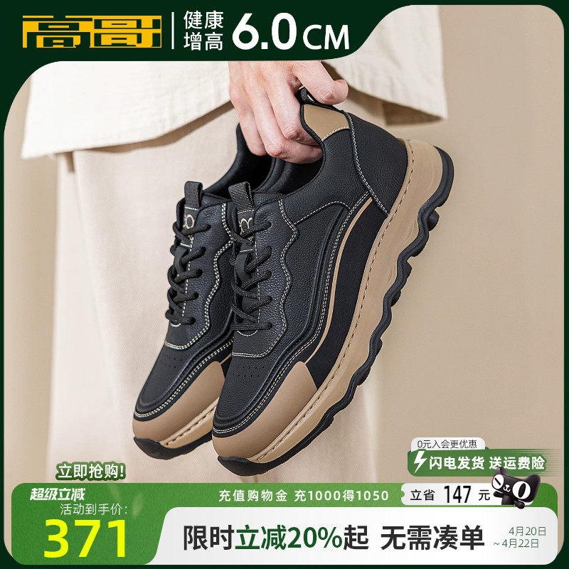 高哥增高休闲鞋厚底新款牛皮男鞋轻便徒步户外鞋男士内增高运动鞋