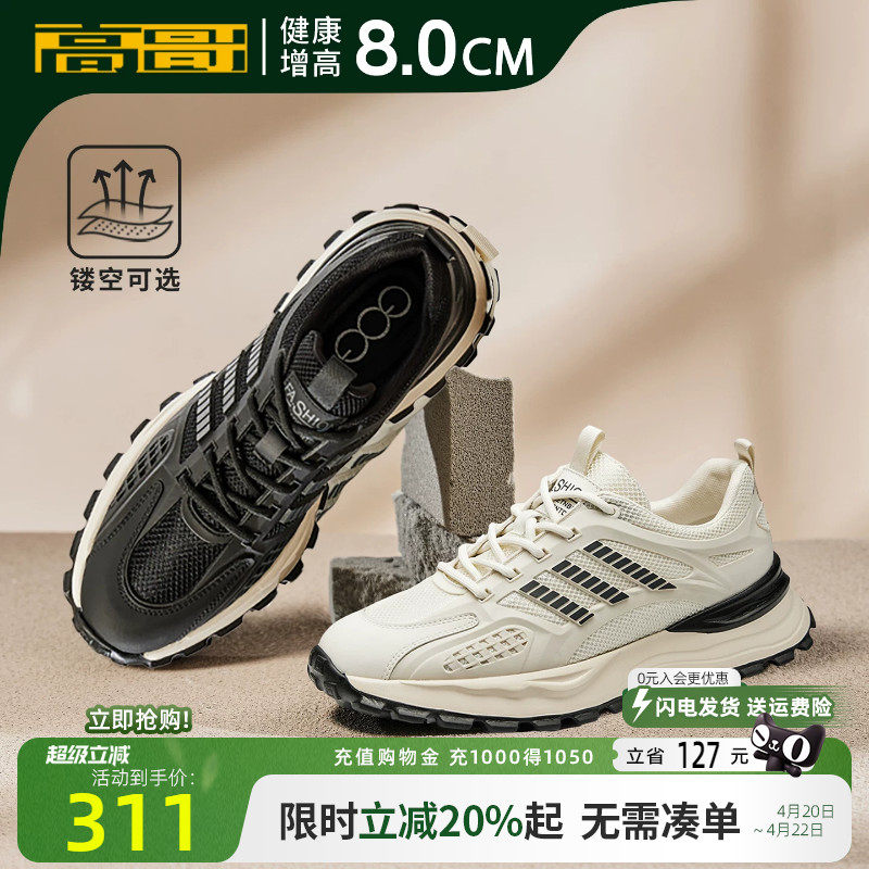 高哥增高鞋男夏季新款运动鞋男士休闲鞋子网面透气内增高男鞋8cm