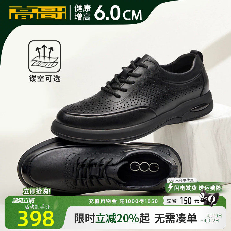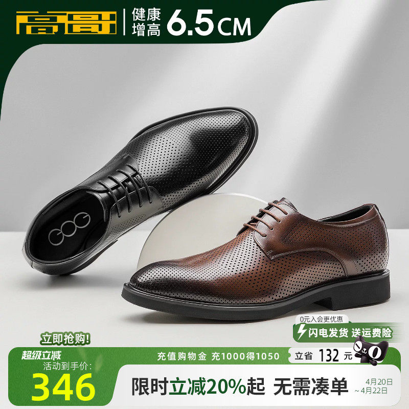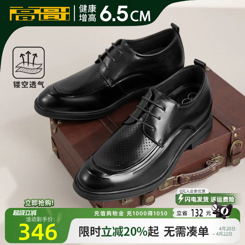 高哥男士增高凉皮鞋夏季镂空透气男鞋头层牛皮通勤德比鞋内增高鞋