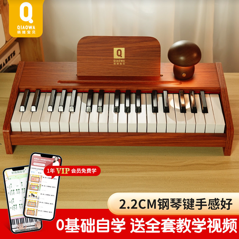 俏娃儿童木质钢琴电子琴初学女孩玩具宝宝乐器启蒙礼物37键入门