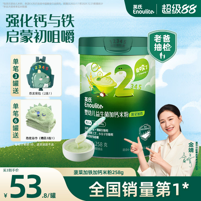 英氏婴儿米粉 宝宝辅食营养米粉米糊 果蔬大颗粒菠菜加铁2段口味