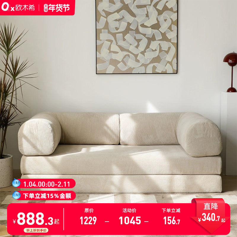 侘寂复古风灯芯绒布艺沙发出租屋小户型客厅两用可折叠懒人沙发床