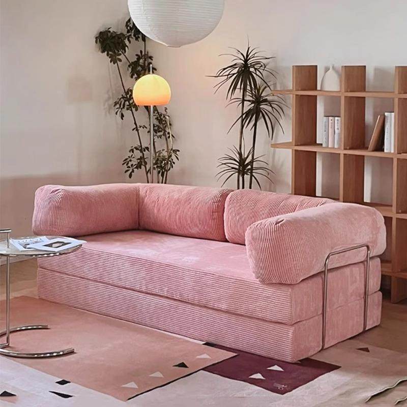 设计师灯芯绒直排布艺沙发美拉德中古风小户型客厅折叠懒人沙发床