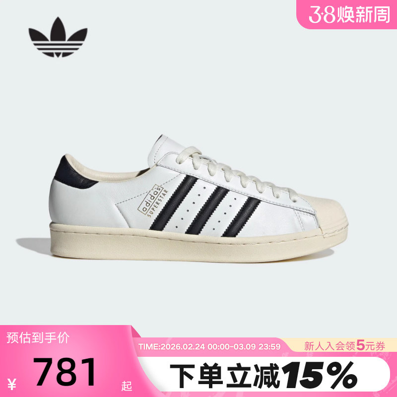adidas阿迪达斯三叶草贝壳头板鞋2026春女SUPERSTAR休闲鞋 JR7444