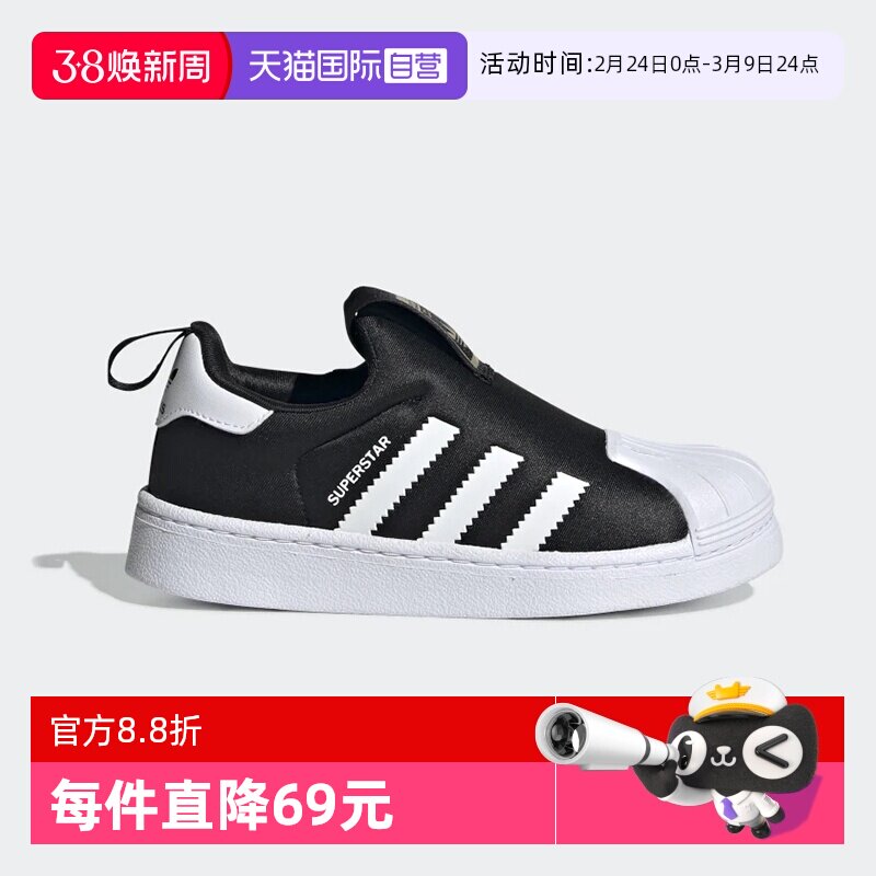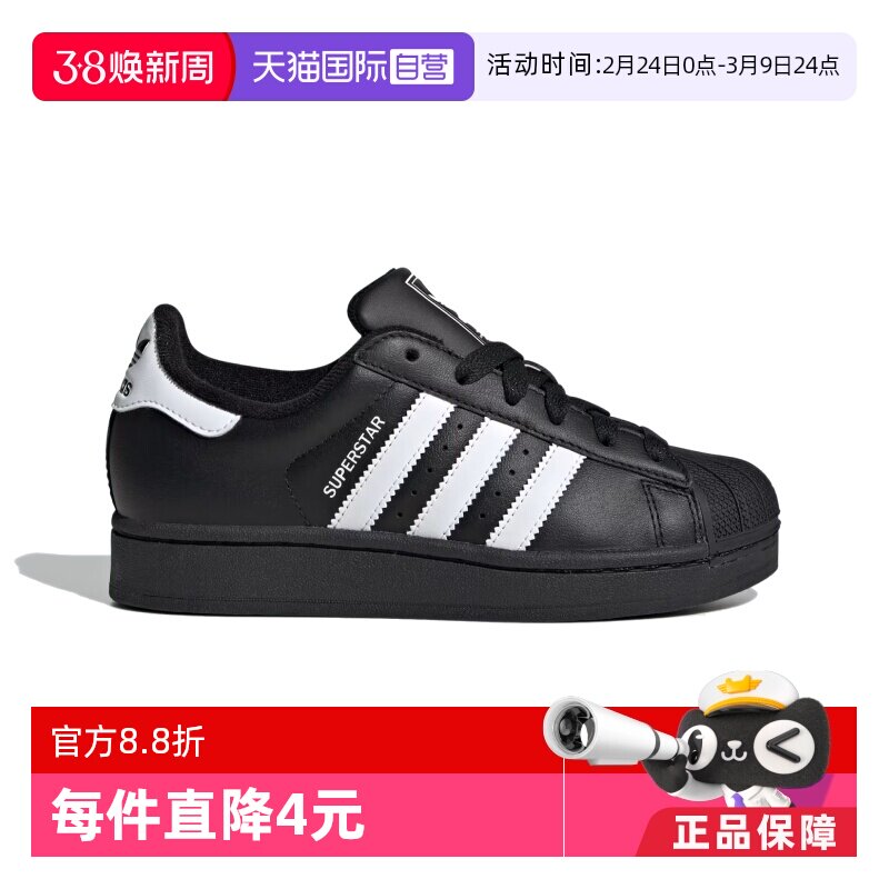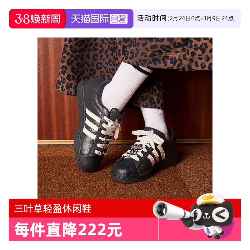 阿迪达斯三叶草贝壳头板鞋2026春女SUPERSTAR黑色休闲鞋 IH1628