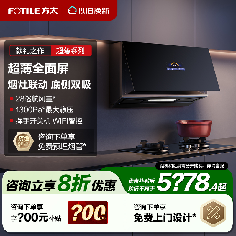 方太F3变频纤薄顶吸抽油烟机燃气灶套餐油烟机灶具套装官方旗舰店