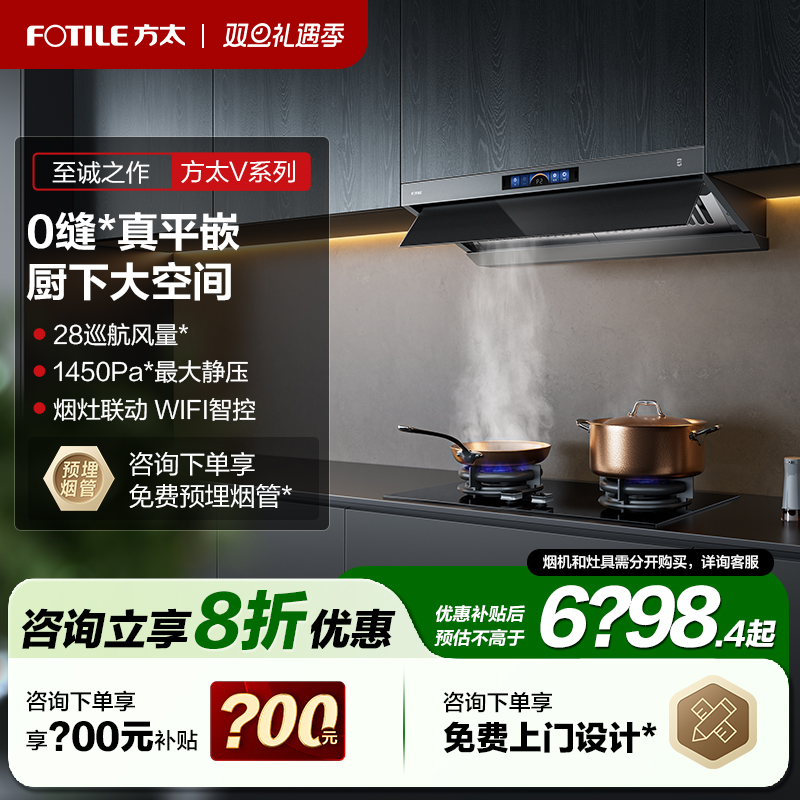 方太油烟机灶具套装V1S顶侧一体抽吸油烟机燃气灶套餐官方旗舰店