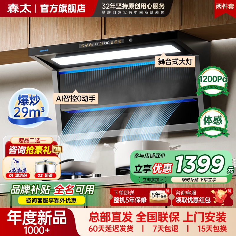 四季沐歌Q30煤气灶油烟机灶具套装组合顶侧双吸大吸力烟灶消套装