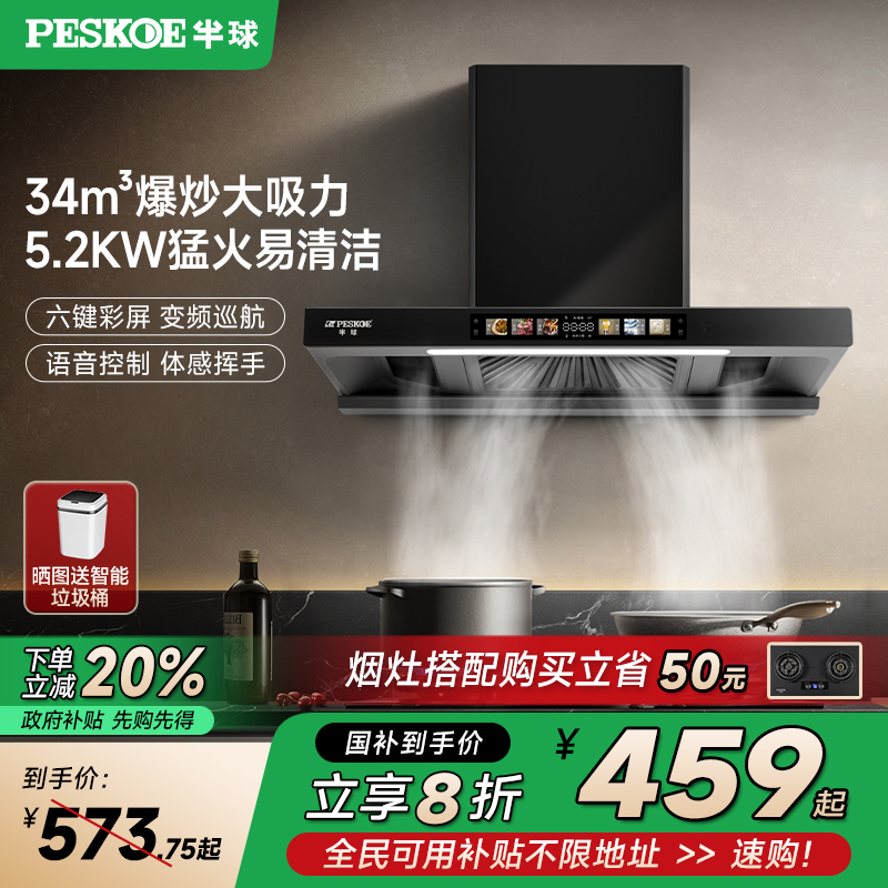 万科油烟机家用大吸力顶侧双吸智能语音抽油烟机吸油烟机灶具套装