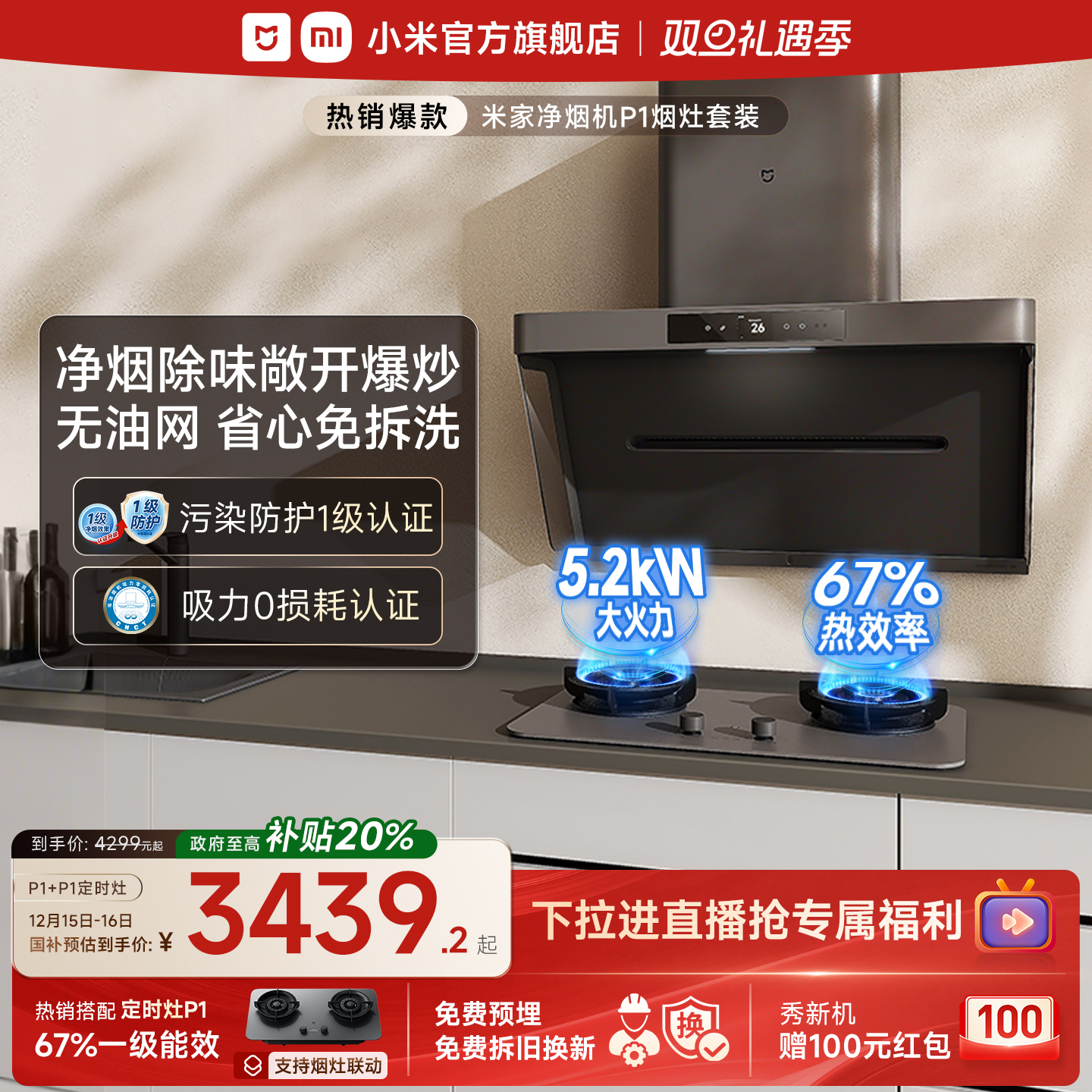 【烟灶组合】小米官方米家智能净烟机P1抽油烟机燃气灶具一体套装