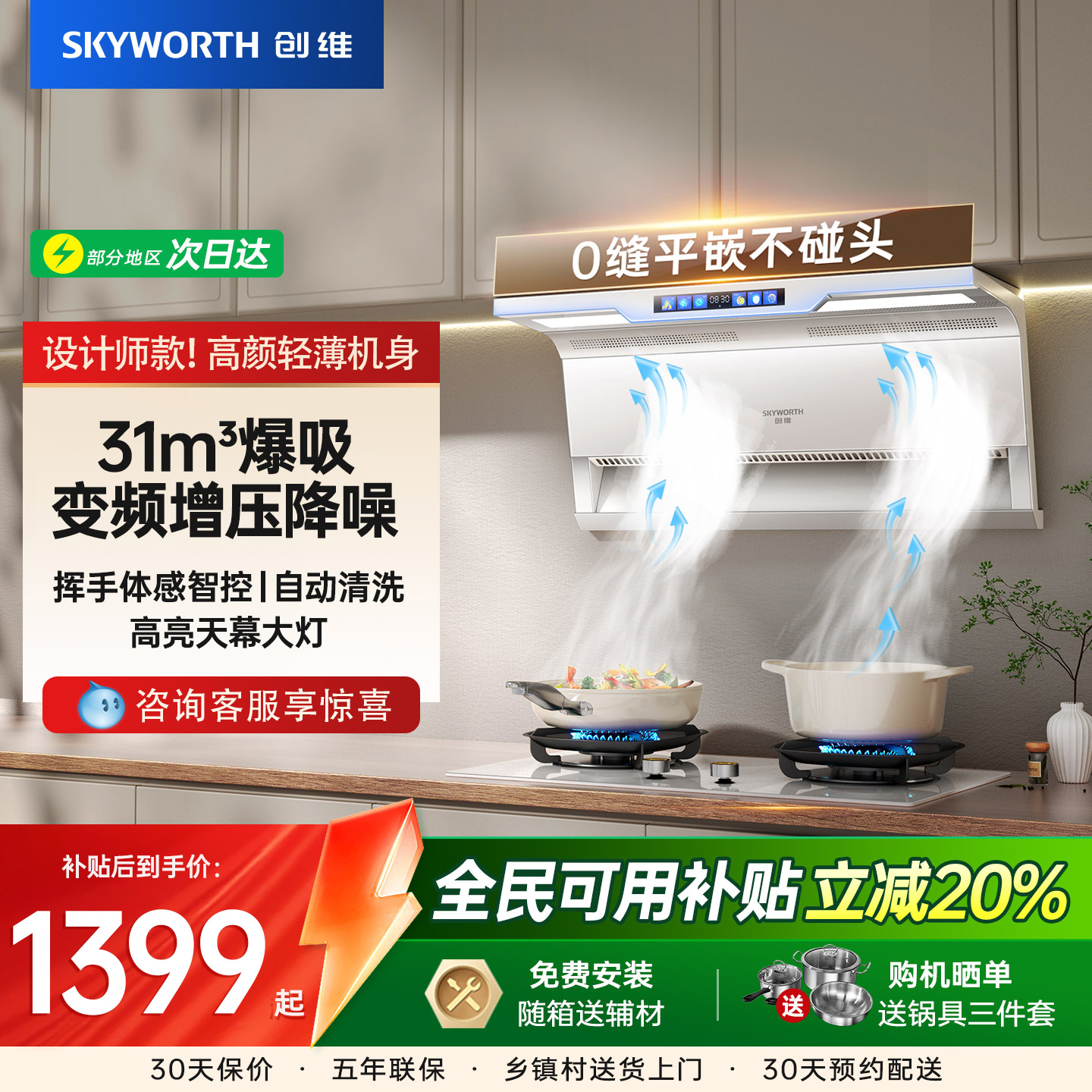 创维烟灶联动抽油烟机燃气灶套餐家用顶侧双吸油烟机灶具套装Y719