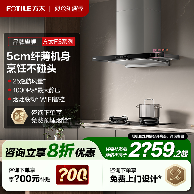 方太F3S抽油烟机燃气灶套餐变频纤薄吸油烟机灶具套装官方旗舰店
