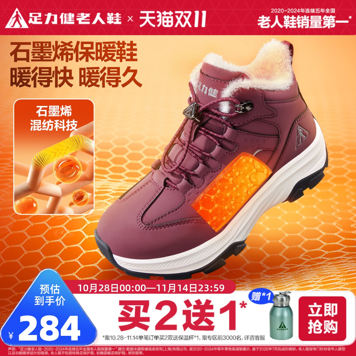 足力健旗舰店2025年冬季老年棉鞋休闲雪地靴加绒妈妈鞋保暖老人鞋