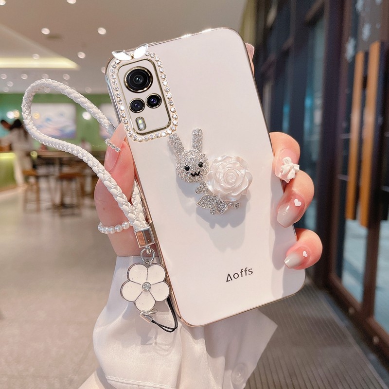 适用于VIVOX60手机壳高颜值女款V2046A四角防摔viv0x60电镀软边vovix6O镶钻高级感vivox60气囊防摔vlvo带支架