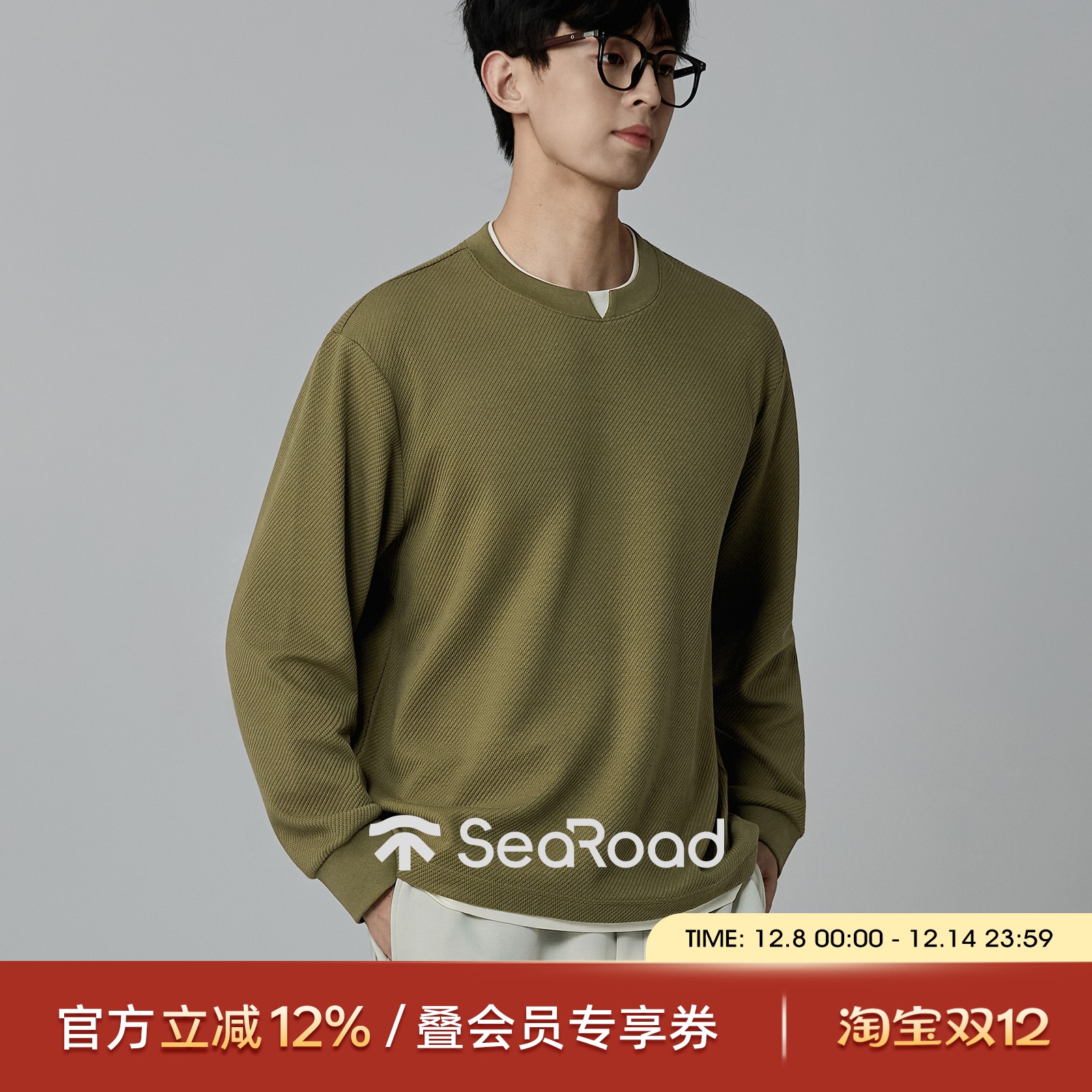 海上公路假两件小V领卫衣男士秋季粗斜纹提花设计感时尚百搭上衣