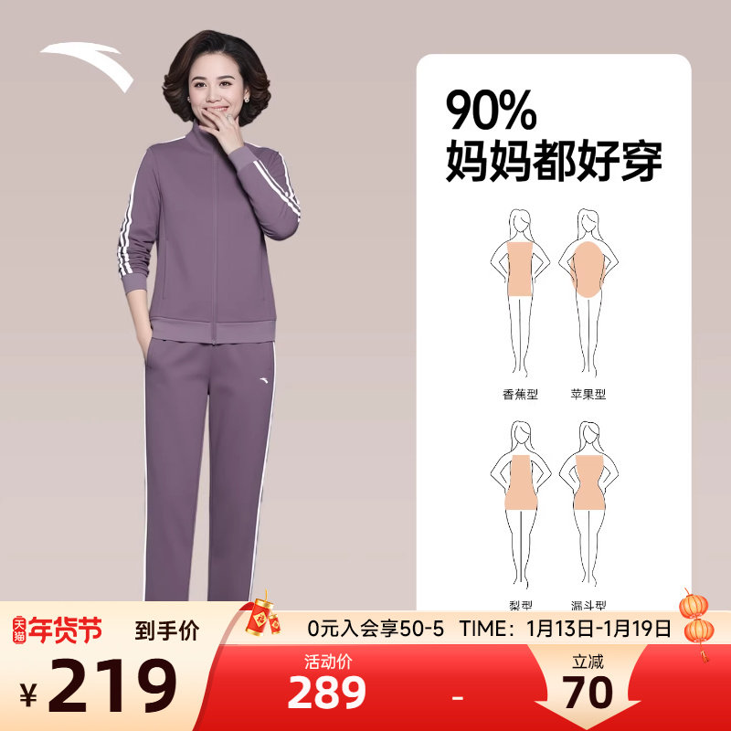 安踏遛弯运动套装女冬季新款开衫外套休闲长裤跑步运动妈妈两件套