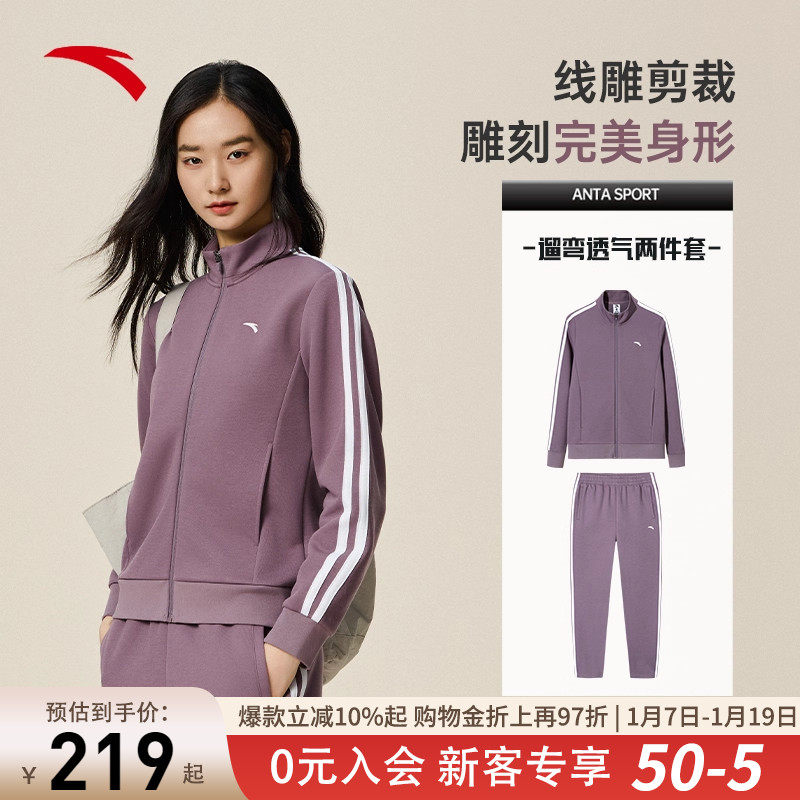 安踏运动套装女款冬长袖立领开衫外套针织长裤妈妈休闲遛弯两件套