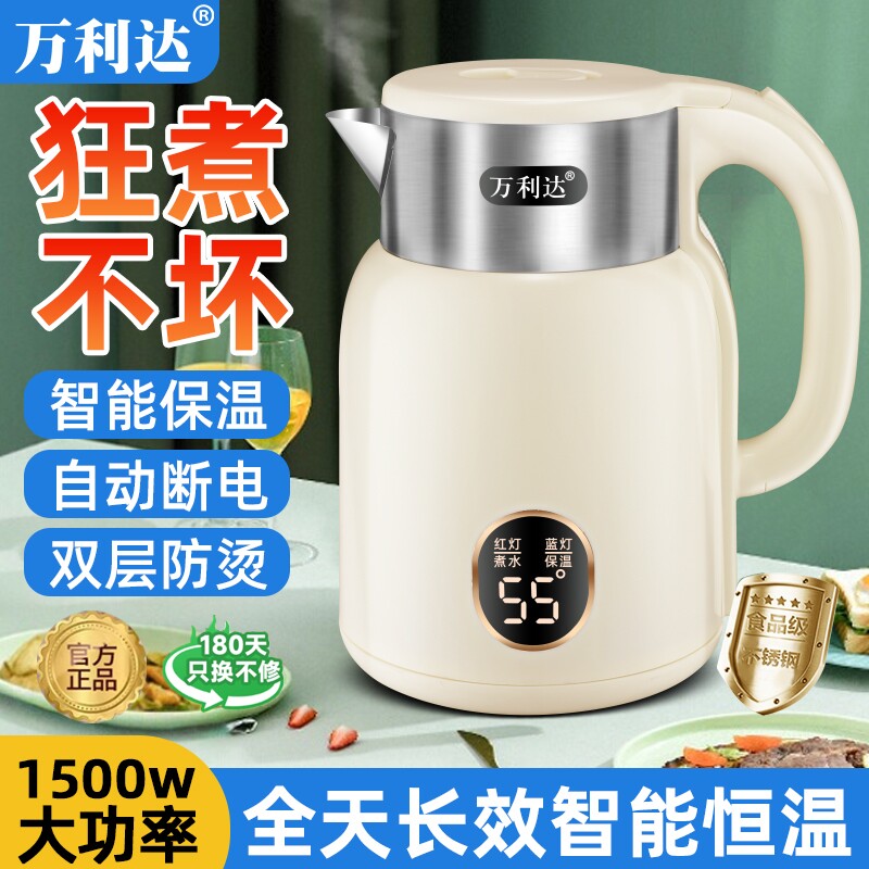 万利达电热水壶家用不锈钢自动断电保温一体宿舍智能恒温电烧水壶