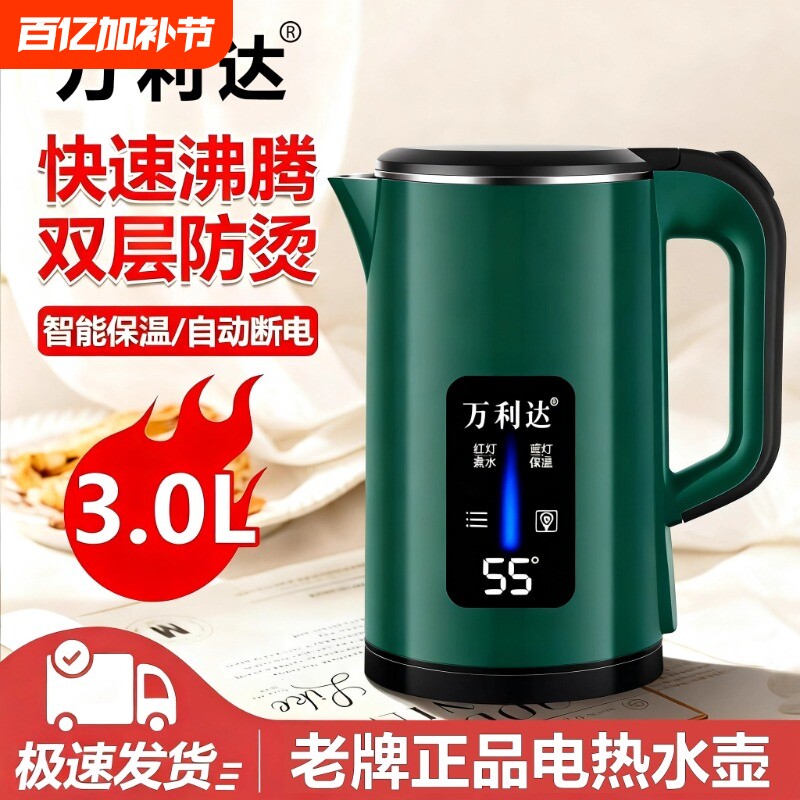 万利达烧水壶智能保温家用电热水壶煮水壶自动断电开水壶3L大容量