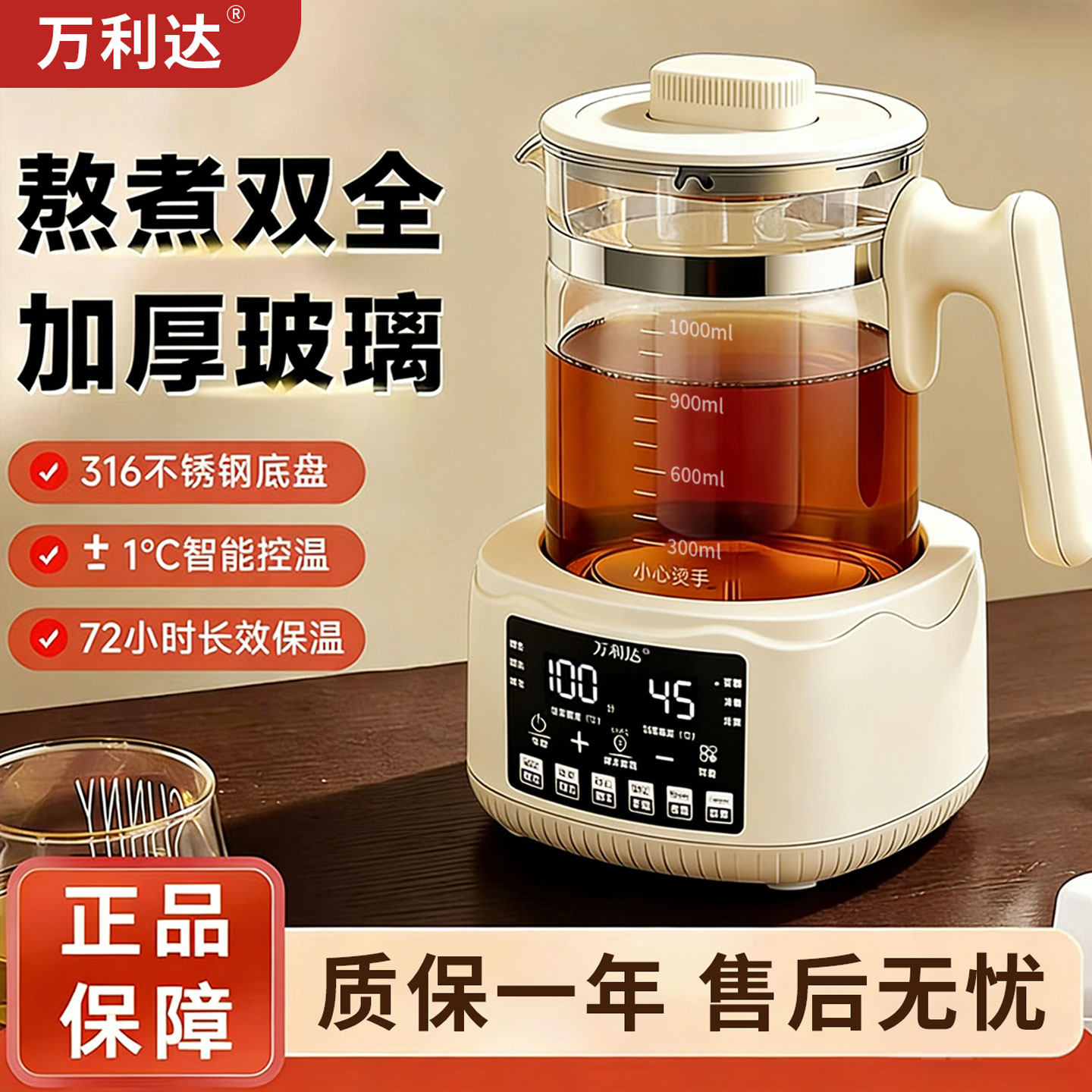 万利达玻璃养生壶家用多功能热水壶炖煮调奶煮茶壶2026新款烧水壶