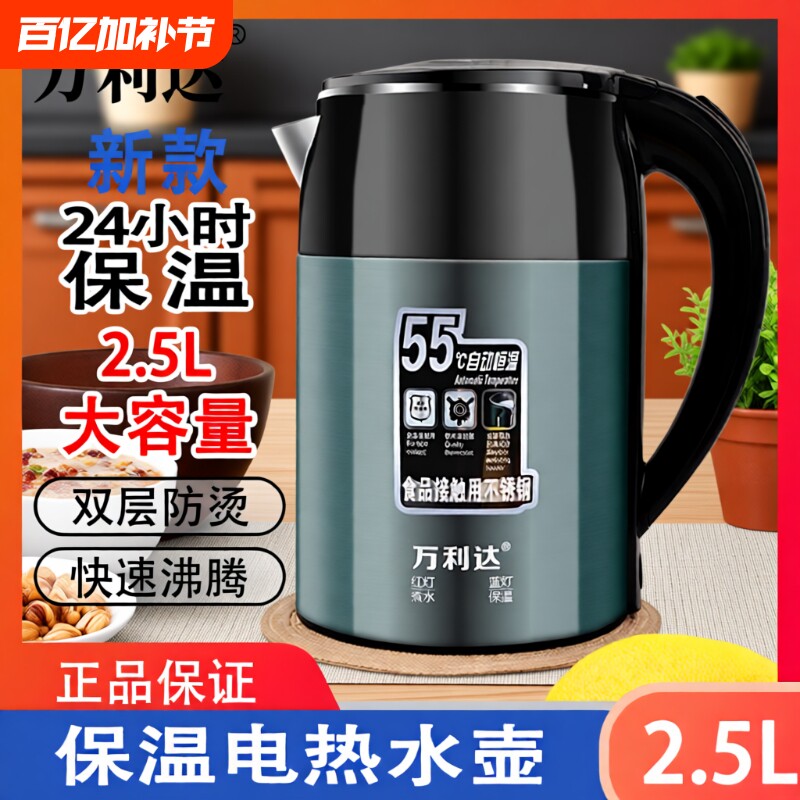 万利达保温电热水壶烧水壶家用大容量2.5升自动断电不锈钢隔热