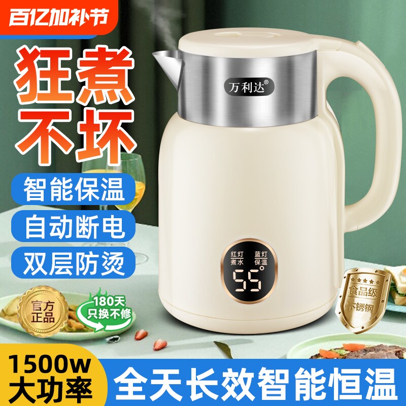 正品万利达电热水壶智能保温家用耐用烧水壶大容量双层防烫热水壶