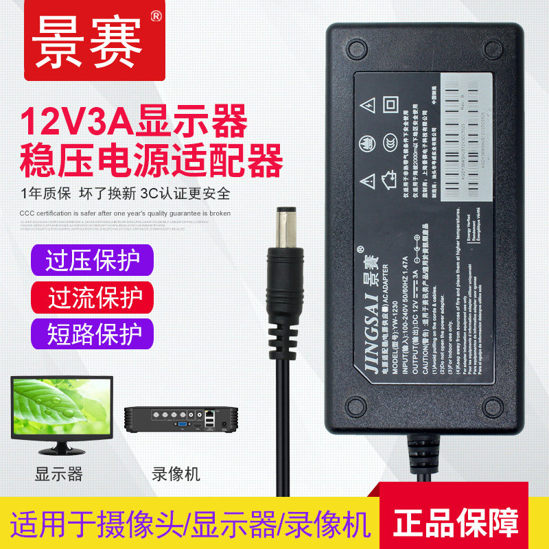 景赛 12V3A电源适配器通用监控摄像头录像机电源线dc12伏4A显示器机顶盒台灯液晶屏笔记本电脑2.5A充电器插头