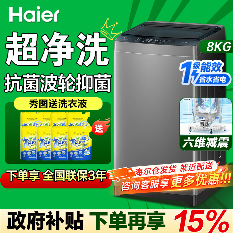 海尔8kg洗衣机10公斤全自动7KG家用波轮洗衣机直驱变频12一级能效