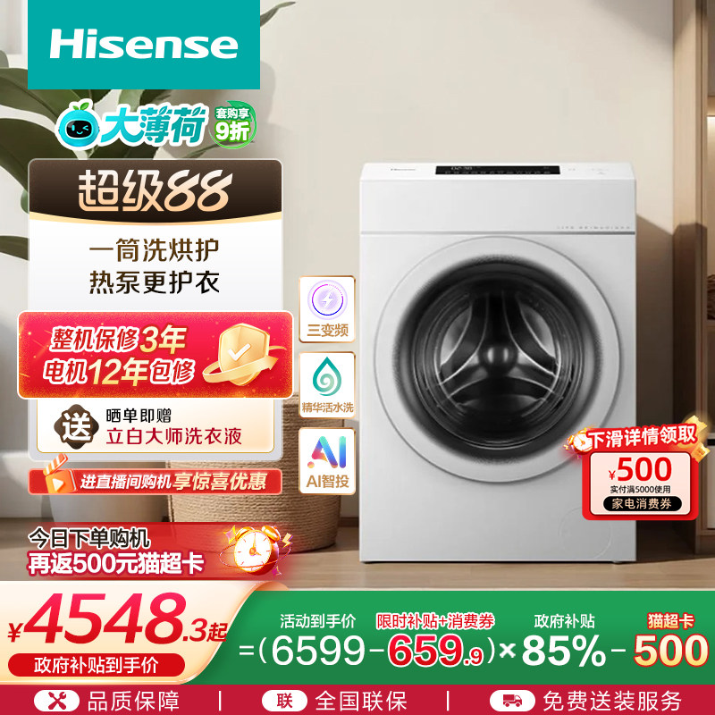 海信大薄荷13KG大容量滚筒洗衣机全自动家用热泵式洗烘一体机E7Q
