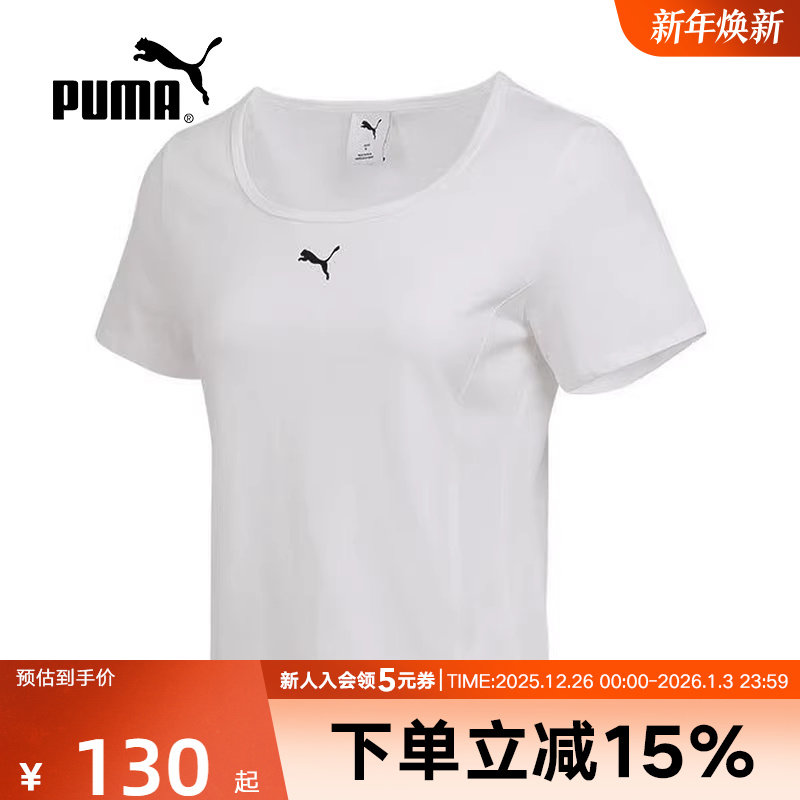 PUMA彪马女款t恤秋季新款简约百搭运动休闲短款圆领短袖634778-02