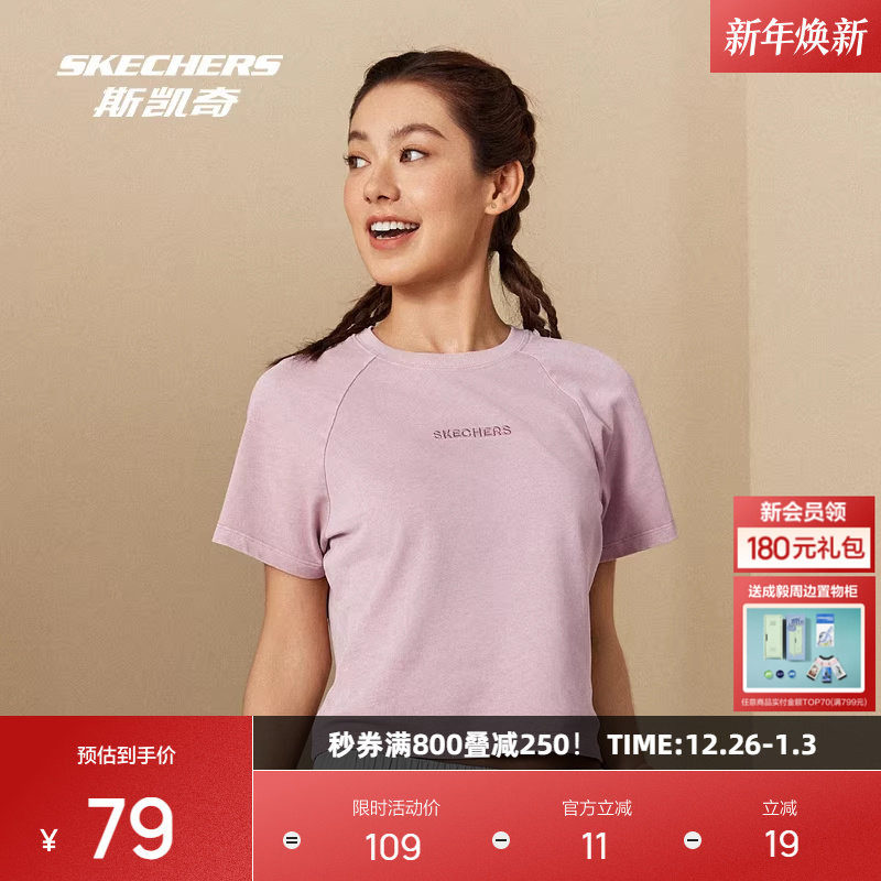 斯凯奇纯棉短袖2025年新品女款T恤日常百搭休闲运动短款修身