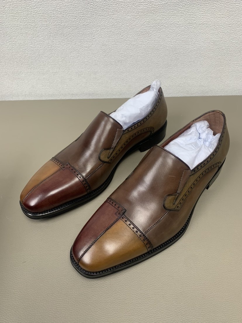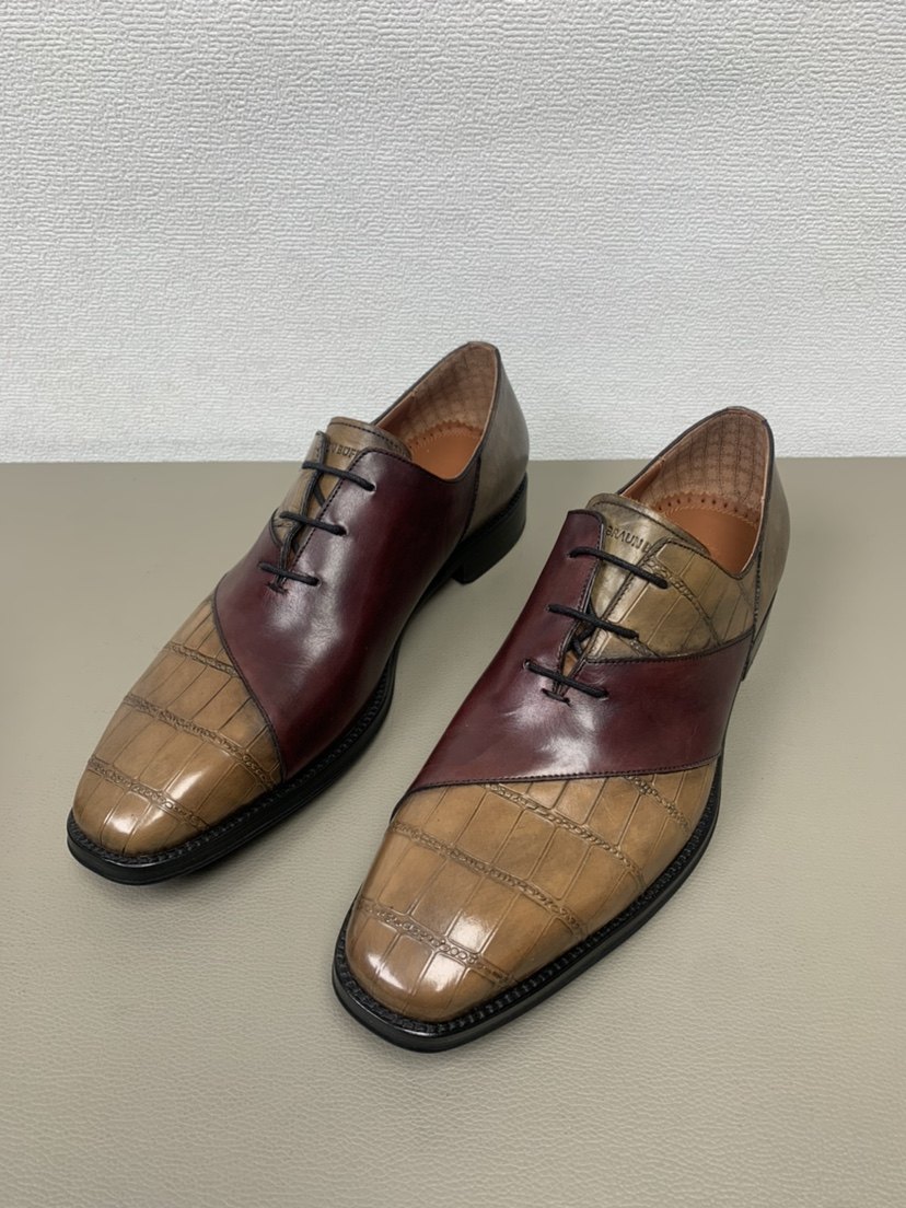 布兰施 24新土耳其头层牛皮商务正装鞋 皮底擦色系带手工拼色男鞋