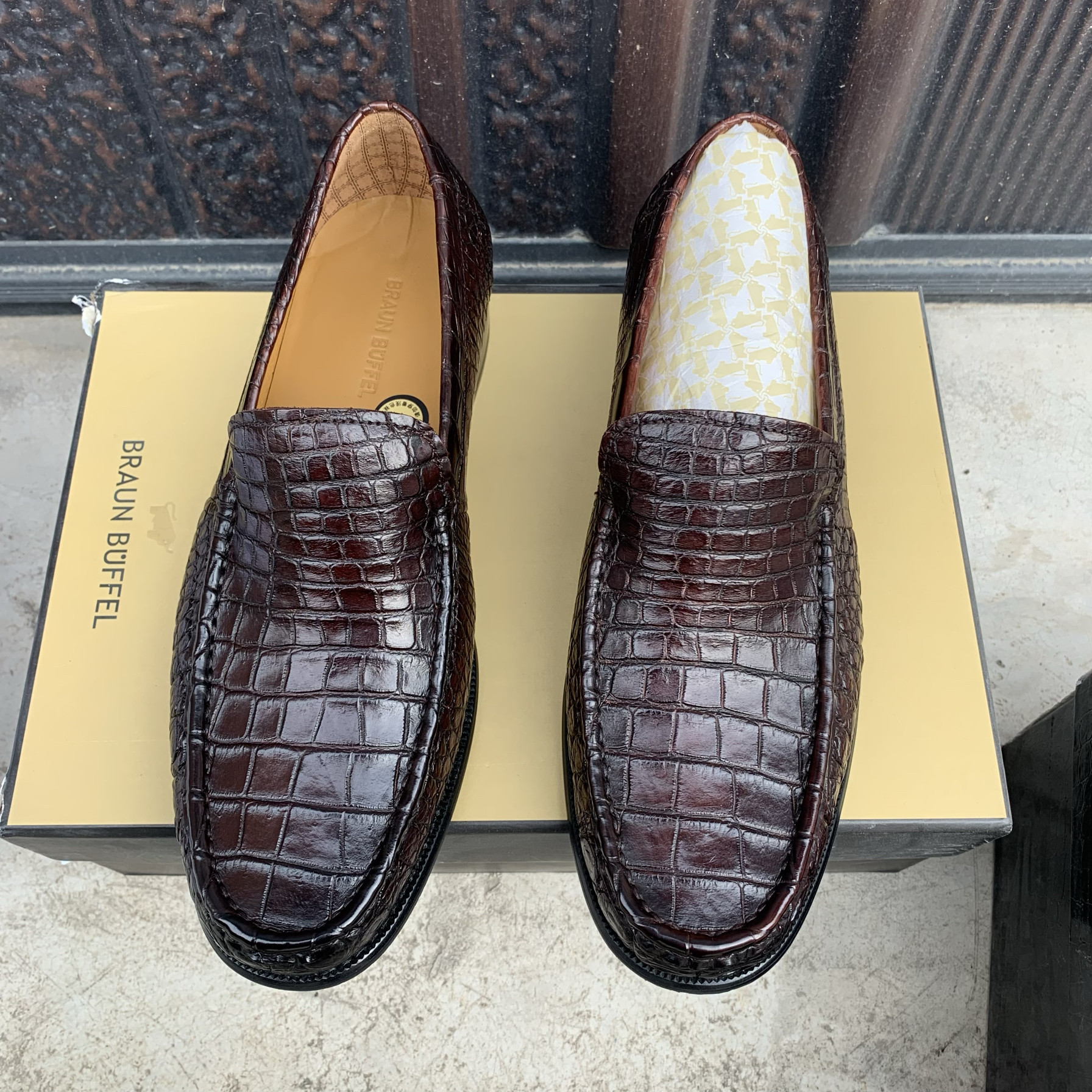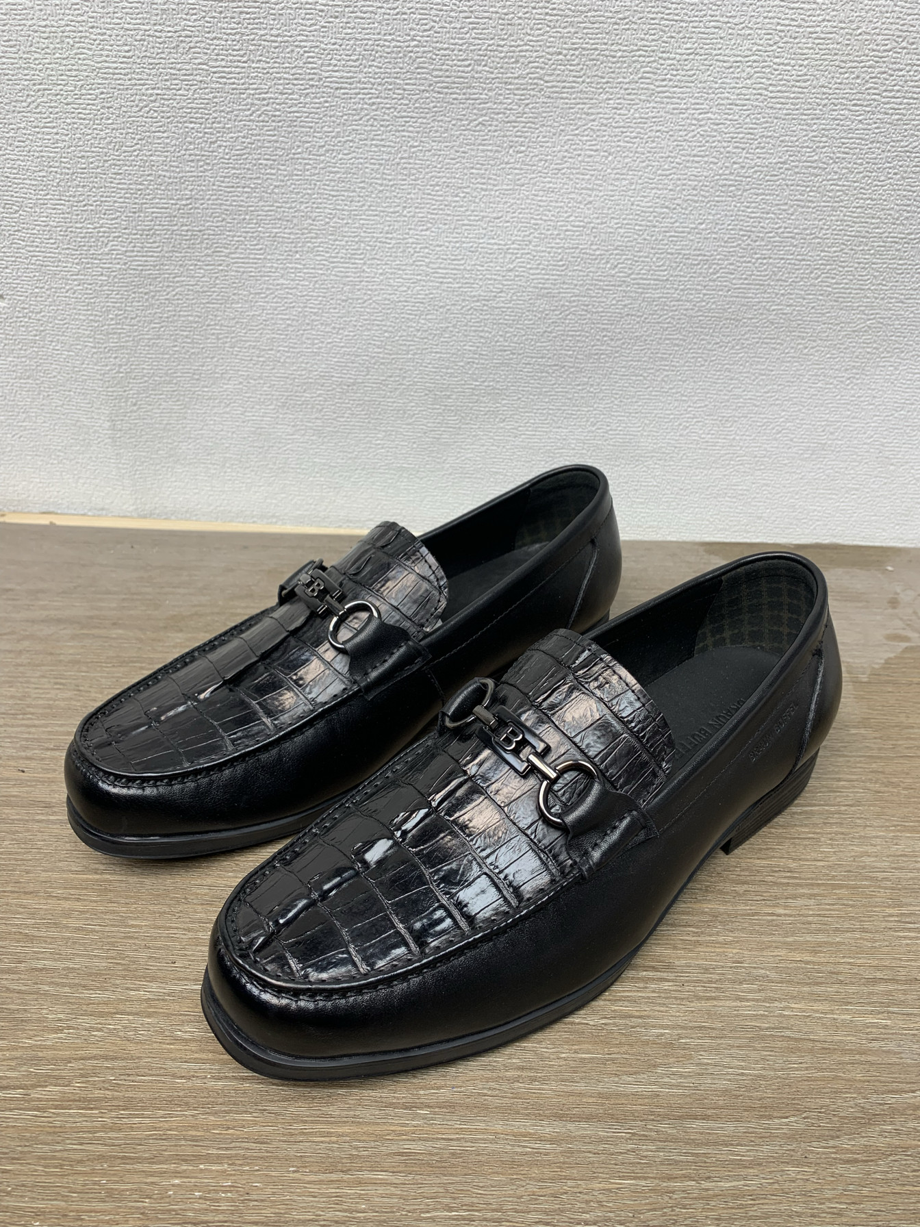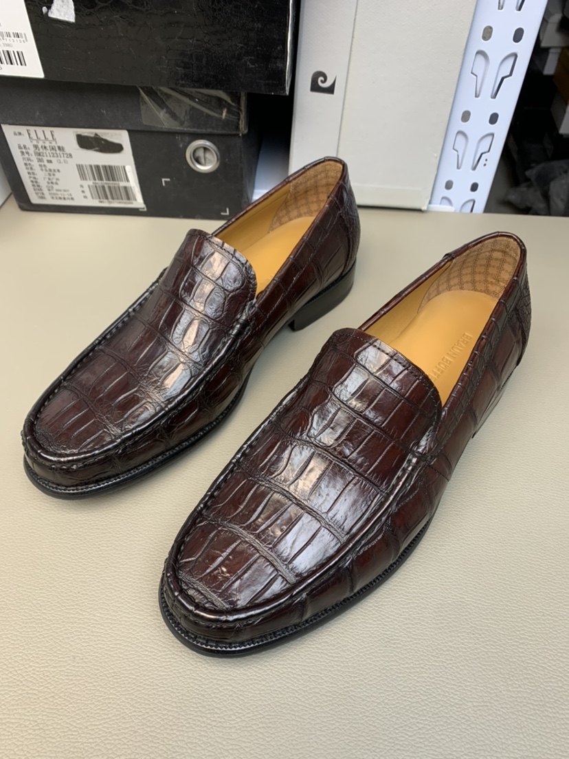 布兰施美洲鳄鱼肚商务乐福鞋 皮底进口v底套脚手工擦色高端男鞋