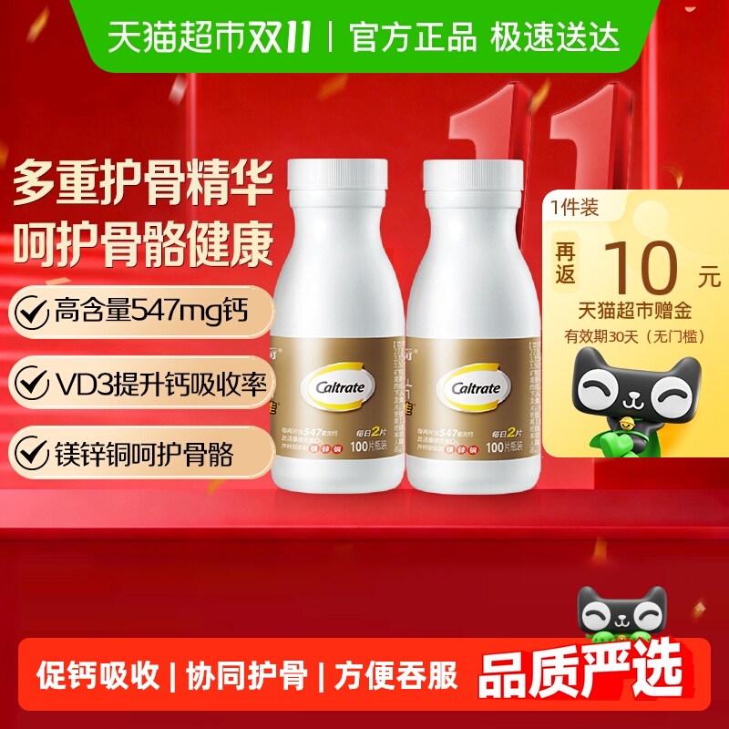 钙尔奇添佳中老年男女关节补钙抽筋补钙100片*2瓶营养补品送礼