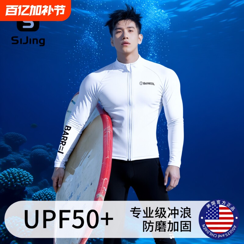 新款拉链冲浪衣男士潜水服防晒速干水上游泳衣浮潜水母衣分体套装