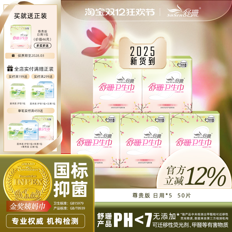 中国台湾舒珊尊贵版日用卫生巾5包组 绵柔亲肤无荧光剂 新材质