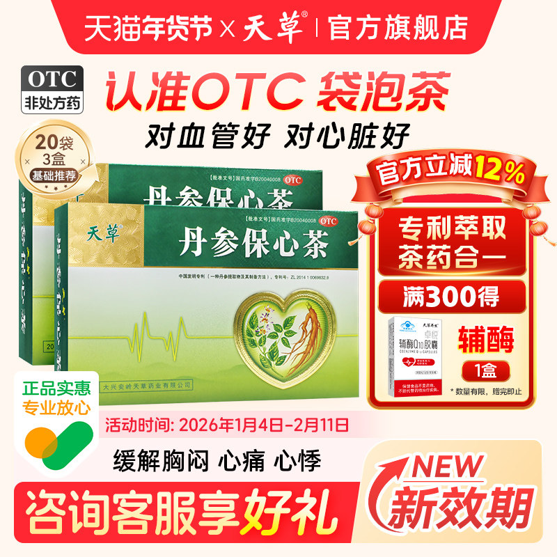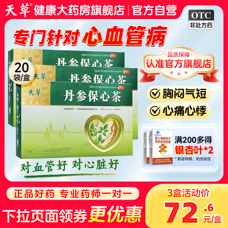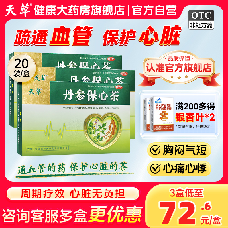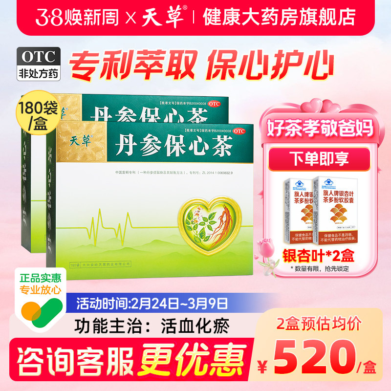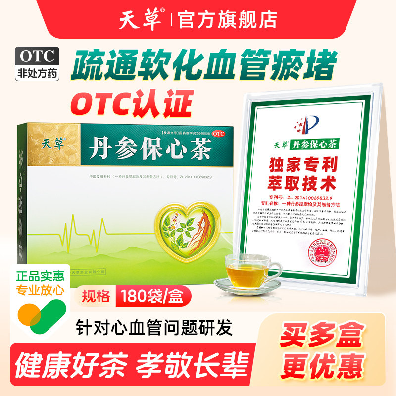 天草丹参保心茶官方旗舰店180袋经典装心脑血管药胸闷心痛心悸