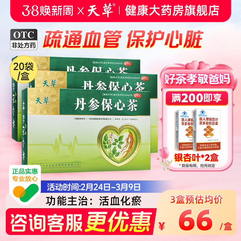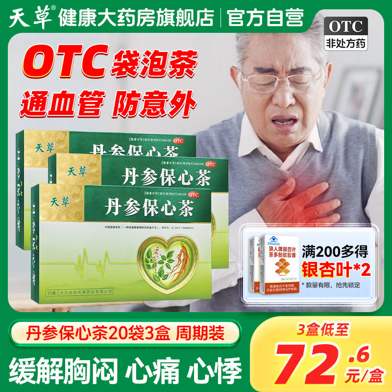天草丹参保心茶官方旗舰店60袋胸闷心悸丹心保心茶心脑血管专用药