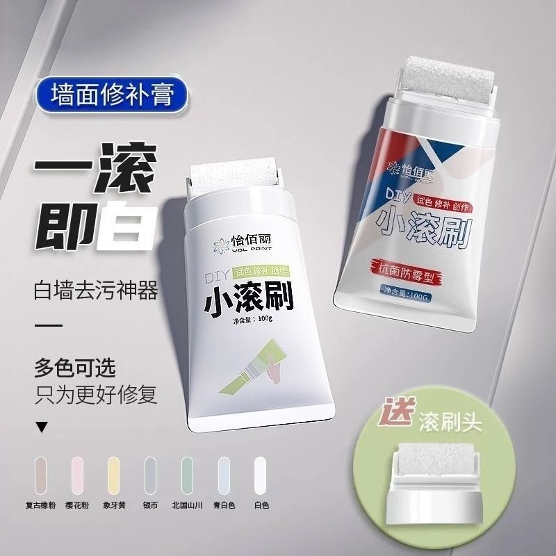 墙面修复补墙漆小滚刷彩色墙漆内墙修补膏白色喷雾小滚筒自喷翻新