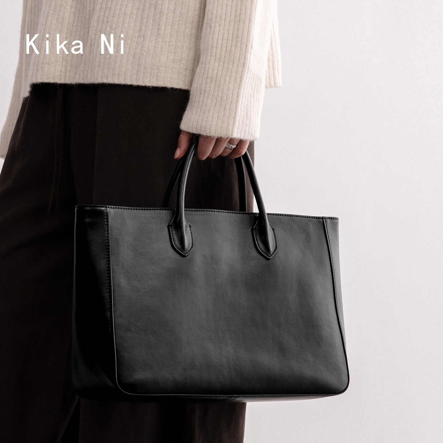 kikani 牛皮手提托特包单肩斜挎女士公文包大容量通勤手拎电脑包
