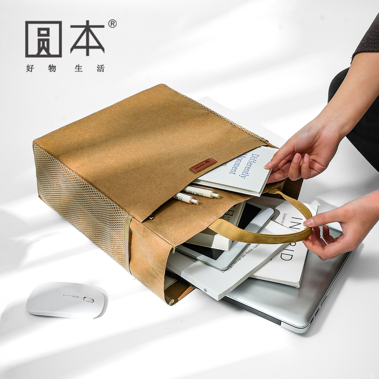 简约复古防水牛皮纸袋通勤笔记本电脑包手提文件包大容量学生资料手拎包可水洗托特包