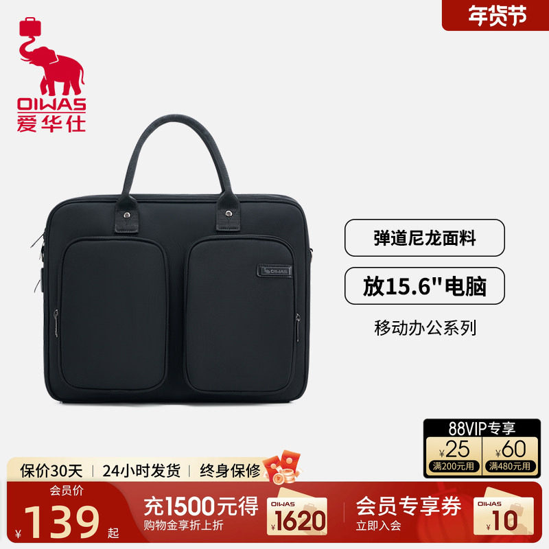 爱华仕公文包男士商务手提包斜挎包大容量电脑包手拎包男通勤出差