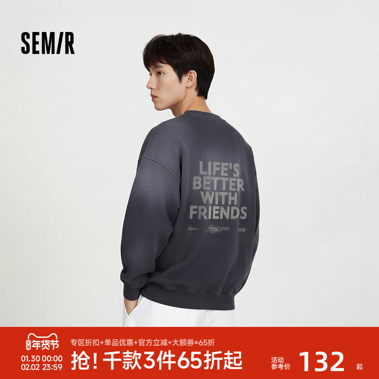 森马迪士尼合作系列卫衣男春季简约字母印花上衣情侣装圆领套头衫