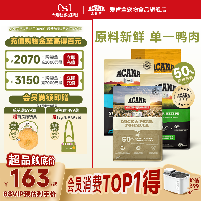 【官方旗舰顺丰】ACANA爱肯拿鸭肉梨狗粮小型幼成犬高龄老犬粮2kg