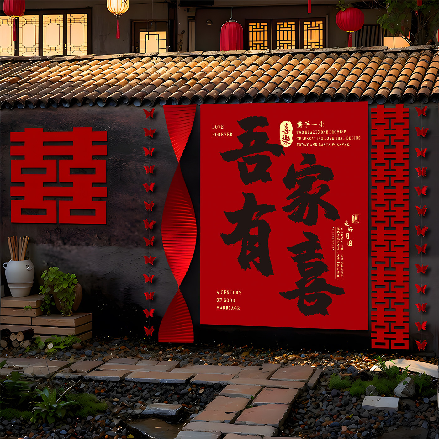 结婚农村自建房庭院布置套装条幅婚房装饰室外超大喜字KT板挂布条