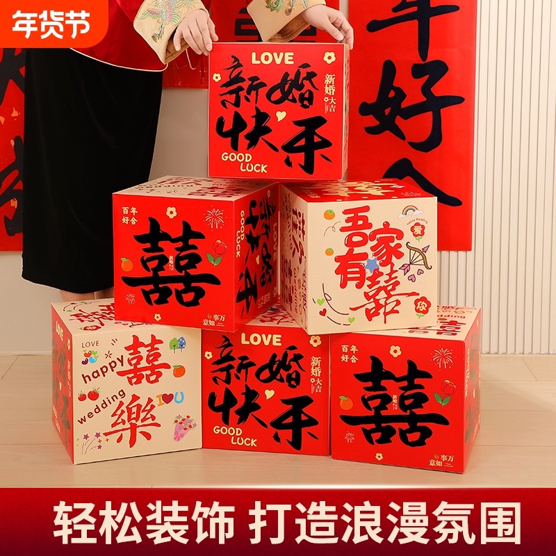 堆堆盒喜字立体盒子男女方新房布置客厅落地摆件结婚酒店婚房装饰