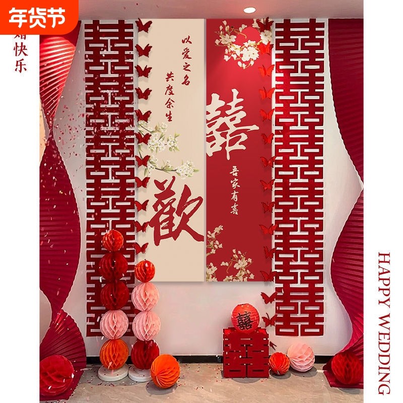 结婚挂布条幅喜字订婚礼用品布置男女客厅婚房装饰晨袍拍照背景墙