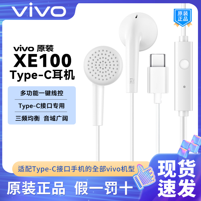 vivo原装XE100耳机X7X9X20X21X27通用有线耳机u3S5Z5z1z3安卓耳机