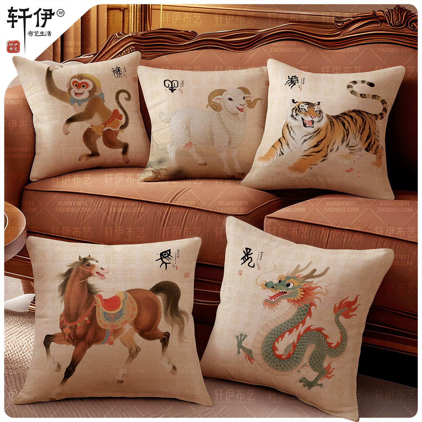 中式十二生肖抱枕创意枕头套客厅沙发靠垫马年生日礼物靠枕午睡枕