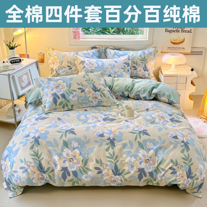 纯棉四件套100%全棉被套床单1.5m1.8m床学生宿舍三件套1.2m床被罩